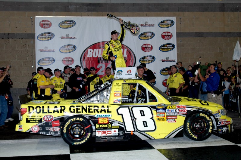 Kyle Busch capped off a dominating day by winning the Bully Hill Vineyards 200 Friday. Starting from the pole, Busch led 140 of 150 laps in route to his second Camping World Truck Series victory of the season. “Our truck was really good.” Says Busch, “Eric (Phillips) did a really good job of adjusting on it.”